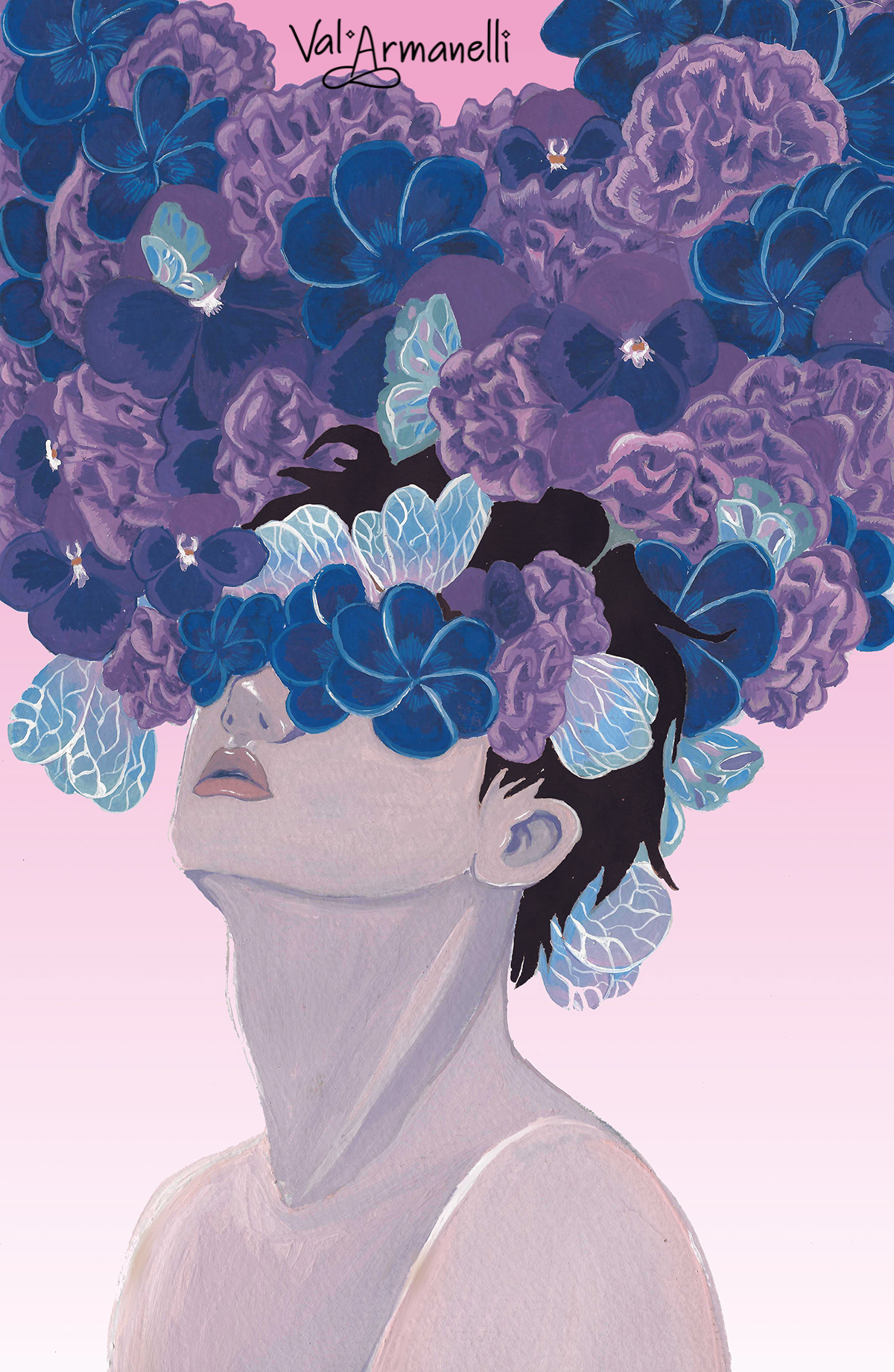 A partir disso, busquei construir uma narrativa que trouxesse uma sensação de melancolia, tristeza e solidão, com flores e cores frias.