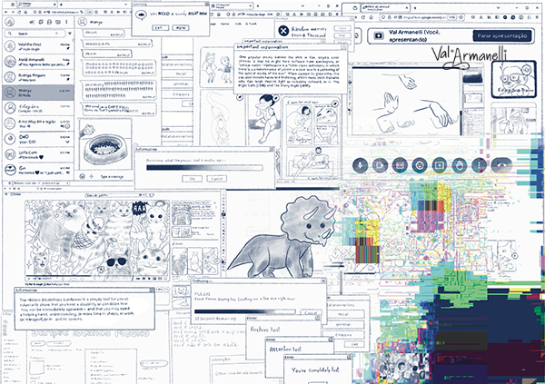 Eu gostava de algumas coisas que fazia nele, mas ainda me sentia em treinamento. Como eu sempre deixo meus projetos pessoais para última hora, o evento estava se aproximando e eu não tinha nada de novo pra mostrar desde o FIQ de 2022. Entrei em pânico, chorei, pensei em desistir de ir, mas daí decidi fazer um zine sobre TDAH. Vai ter outro post no blog explicando melhor o processo de criação desse zine mas, por enquanto, o que nos importa é que, mesmo com muitos problemas técnicos, foi minha primeira publicação oficial usando arte digital.